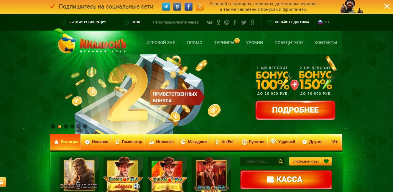 Онлайн казино Клуб Миллионъ предлагает только топовые игровые автоматы от провереных разработчиков. На выбор игроку предоставляется целый ассортимент различных новинок.